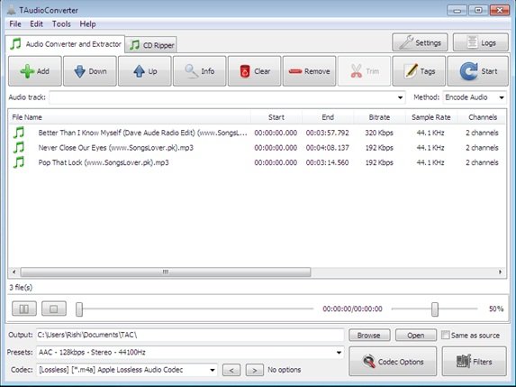 - Once everything is done merely click on Rip push button and leave the rest of affair on TAudioConverter.